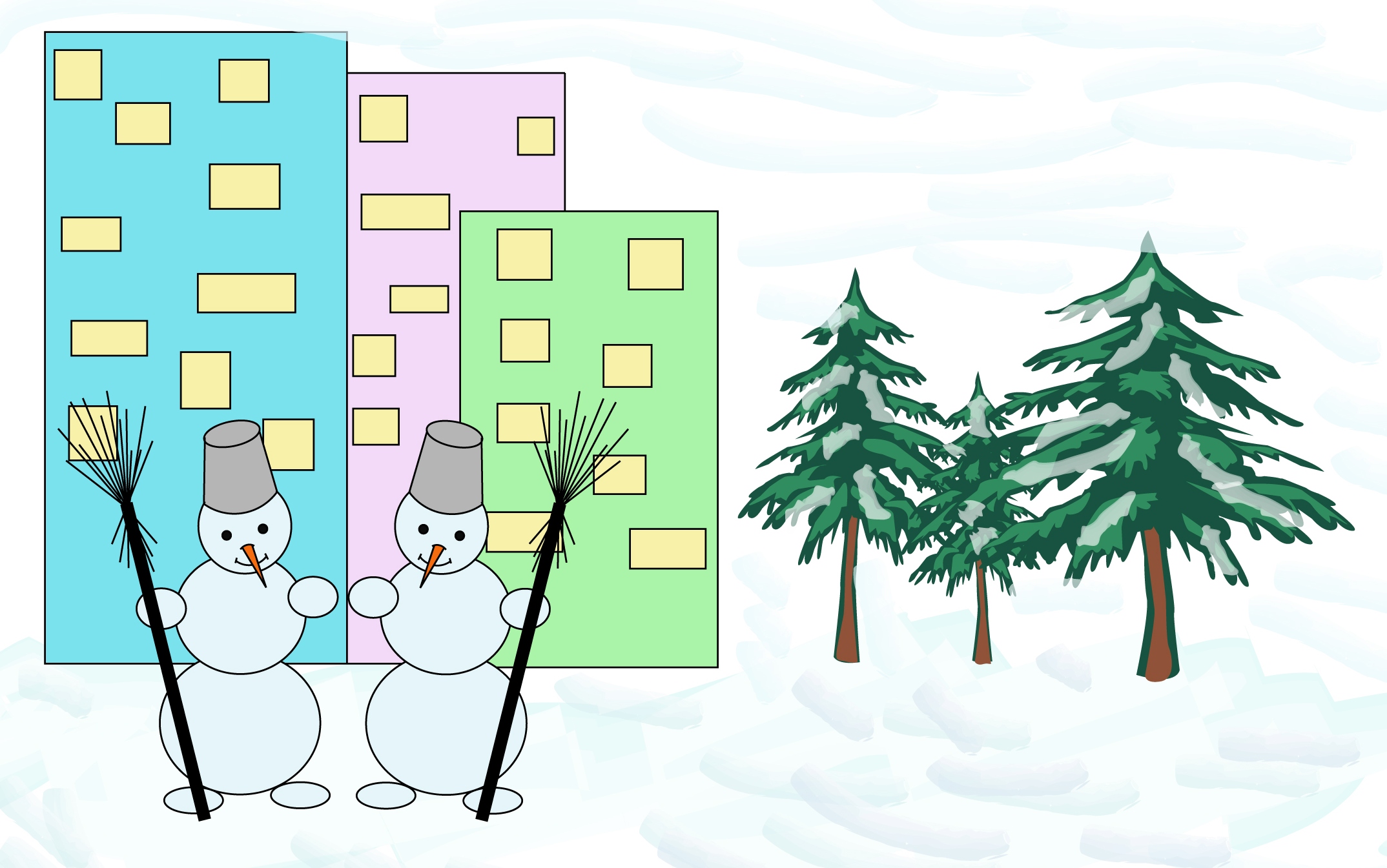 7. Наши снеговики готовы. Нарисуйте им вместе с ребенком какой-нибудь фон.