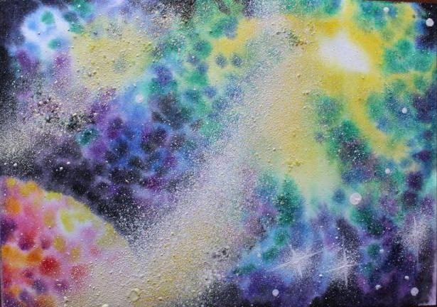 2. Наблюдайте, как кристаллы соли впитывают в себя воду. В этих местах начнут образовываться светлые пятнышки разного размера.