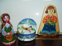 Настоящая сказка отражается в зеркально-гладкой поверхности ярко расписанных шкатулок и ларчиков. Секреты Мстеры, Полеха, Холуя открывает своим ученикам А.М. Денисов. Федоскинская техника письма маслом взята за основу рождающейся сибирской росписи.