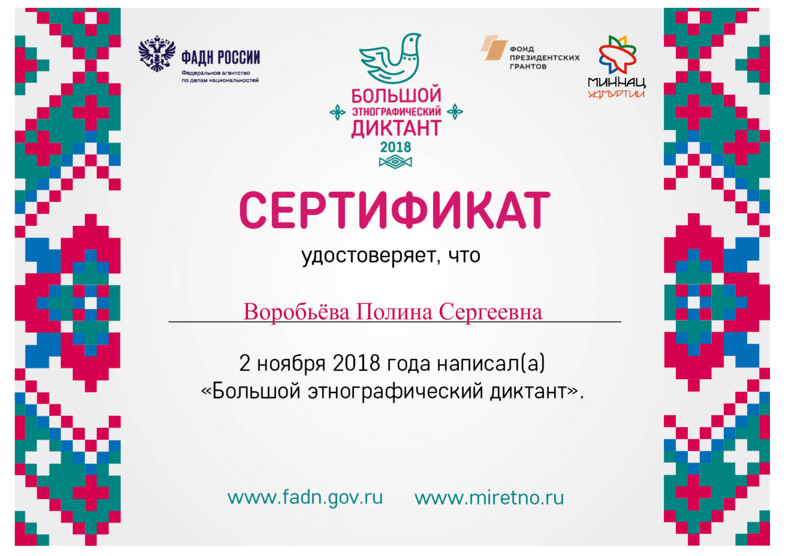 Именной сертификат за участие в Диктанте вы можете скачать ниже, кликнув по своей фамилии. Если в самом сертификате ваши ФИО указаны неверно или в них допущена ошибка – обязательно обратитесь к куратору площадки!