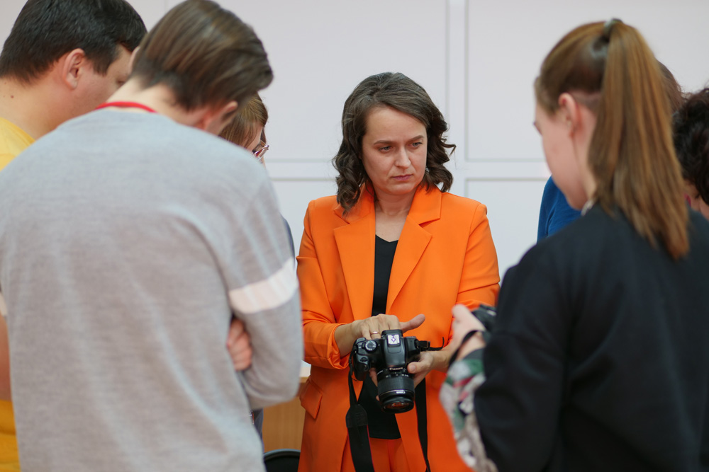 Участники следующего мастер-класса, вооружившись фотоаппаратами, отправились изучать «Основы фотоискусства» вместе с детским фотографом Екатериной Овчаренко. Специалист поделилась с фотолюбителями теоретическими основами создания привлекательного кадра: какие действия необходимо совершить до съёмки, как снимать в ручном режиме и чем он отличается от «авто», как правильно выстроить композицию, свет и цвет в кадре. После теории — практика: желающие смогли попробовать себя в мини-съёмке одного портрета. Имея опыт фотосъёмки и в других направлениях, Екатерина с лёгкостью ответила на интересующие вопросы участников, дала дельные советы и рекомендации тем, кто желает и дальше развивать свои навыки, а также сделала разбор нескольких снимков, проанализировав ошибки и положительные моменты.