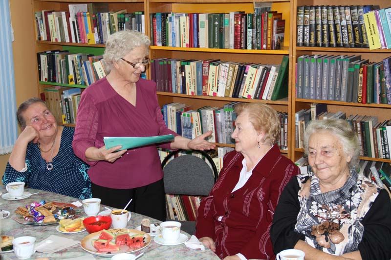 Одним из ярких эпизодов встречи стал рассказ о своем жизненном пути самого пожилого человека в клубе А. Т. Добровольской, которой в 2015 году исполнилось 90 лет. Участники встречи интересовались «рецептами» ее бодрости и силы духа. Поделились своими «рецептами молодости» и другие. Для них звучали музыкальные поздравления от солистки Е. Процек. В завершении праздника И. Г. Родькина подарила всем участникам небольшие подарки, которые сделала своими руками. Затем желающие принять участие в изготовлении поделок приготовили маленькие сувениры на память о встрече, подарив их друг другу. Ведущая пригласила всех присутствующих к праздничному чаепитию. К столу был приготовлен большой пирог от спонсоров, представителей банка «Золотой фонд».