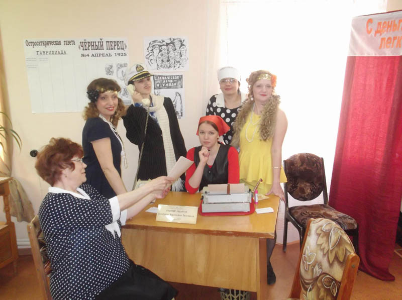 На открытом голосовании на странице ЦГБ в соцсети после мероприятия из 136 участников опроса 73 человека свой выбор сделали в пользу конторы «Рога и Копыта». Без сомнения, что больше всего удалось работникам детской библиотеки «Родничок», так это создание иллюзии полного погружения в эпоху НЭПа. Даже если не смотреть на легкоузнаваемых Остапа Бендера и Эллочку Людоедку, а со стен убрать плакаты с разобранными в народ афоризмами из «12 стульев» и «Золотого теленка», все равно понятно, где находишься. Налюбовавшись на антураж эпохи, от души посмеявшись на конкурсах, обменяв на аукционе заработанные «стулья» на «черное золото» или «современный планшет», отправляемся дальше.