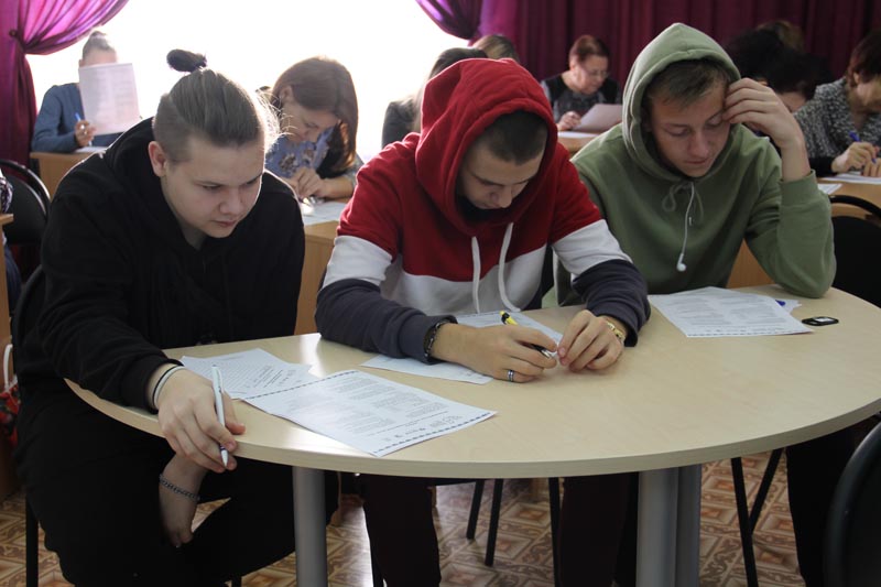 Всего проверить свои знания в этом году решили 53 устьилимца, среди которых и постоянные участники Диктанта. Этот факт свидетельствует об интересе жителей нашего города к данной теме. Также хочется отметить, что, несмотря на очередные школьные каникулы в общеобразовательных учреждениях, многие из присутствующих - школьники.